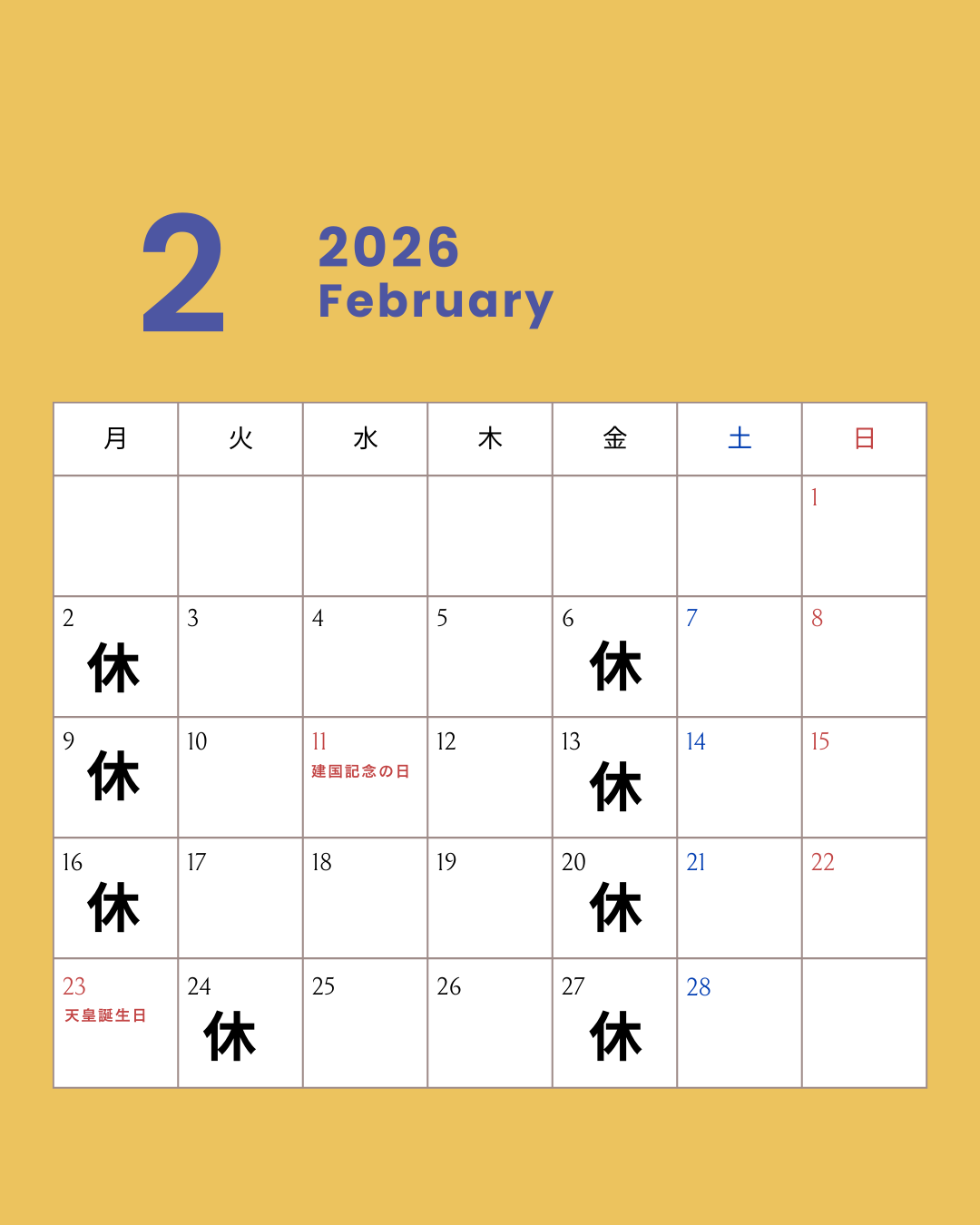 2026年1月の営業カレンダーです!